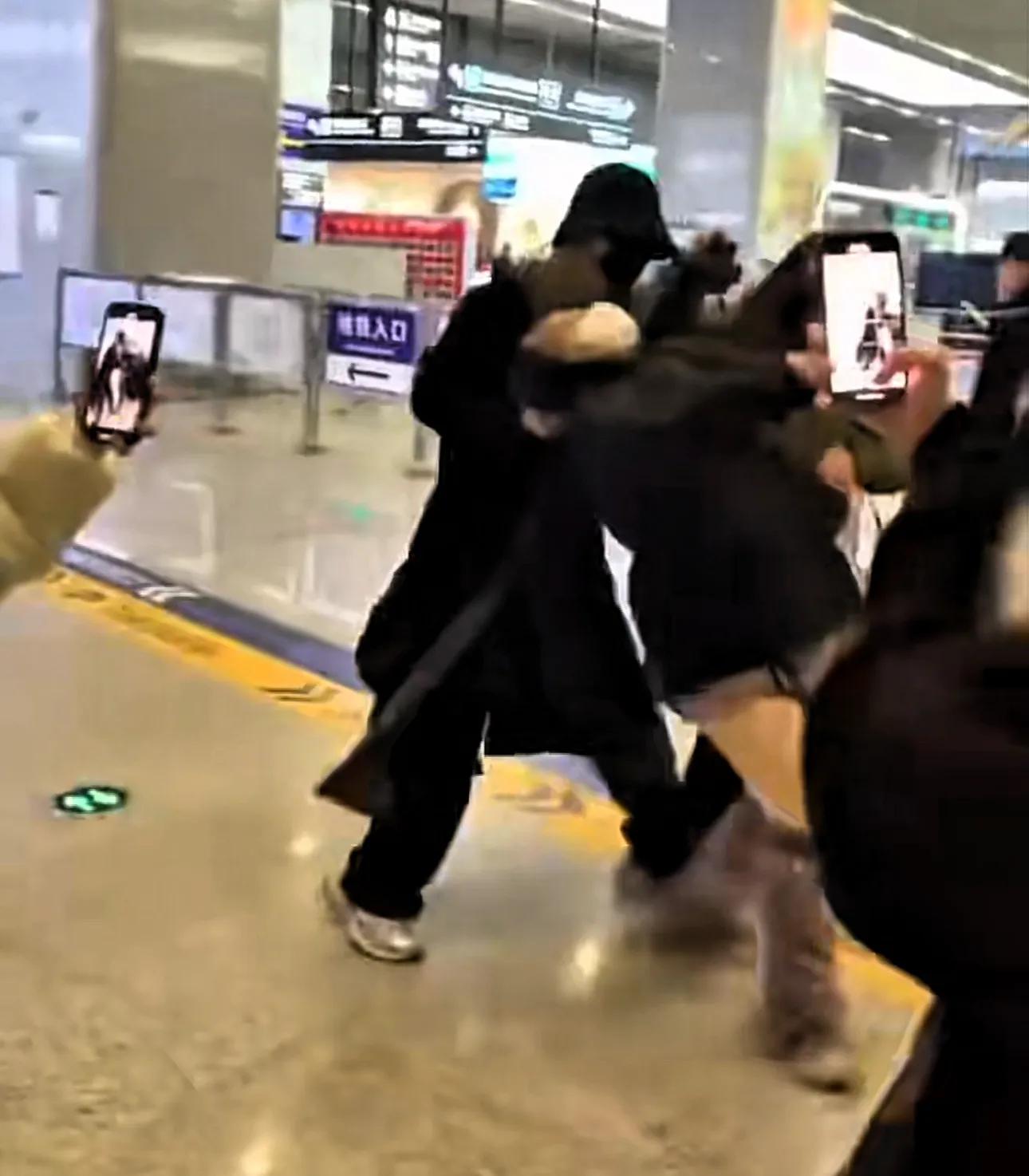 在目前网络上的视频中,灵超在高铁站往前走,被打的女生在他的侧面,用手机录制视频,距离比较近,这个时候灵超突然爆发,用手打掉粉丝的手机,然后还上前抓着粉丝头发将其撂倒,还好没有后续动作,要不事情就更大。